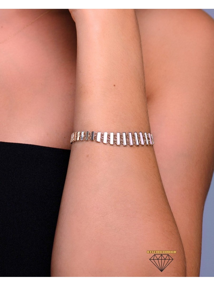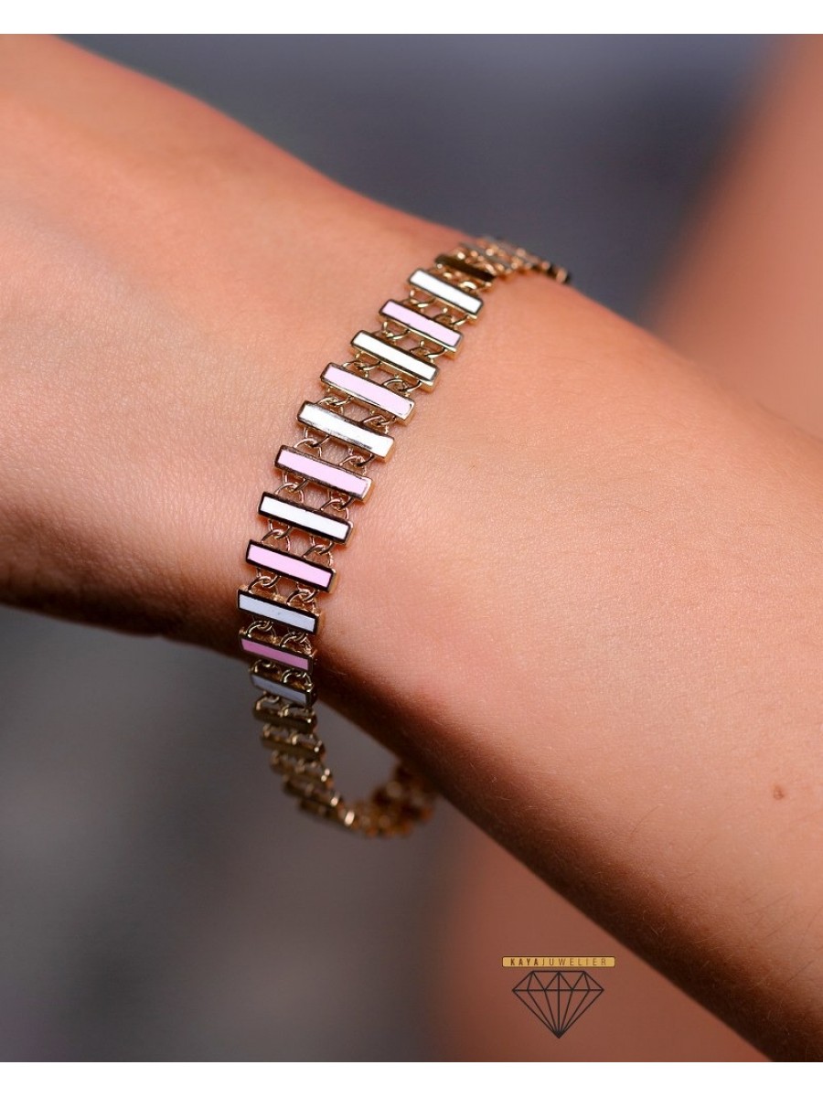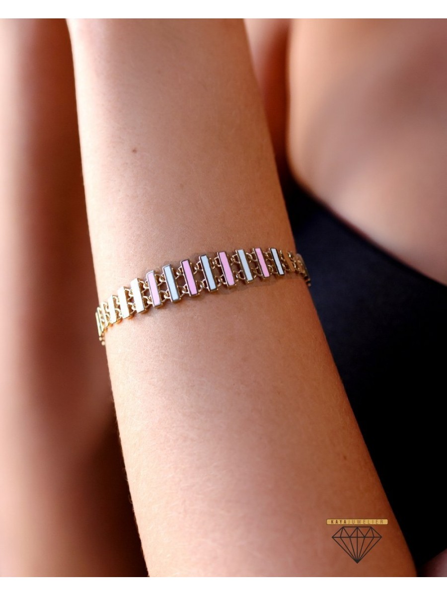 Çizgili Pembe Bileklik Yeşil Altın - 9.26 Gr - BLK1398 - 14 Ayar Altın