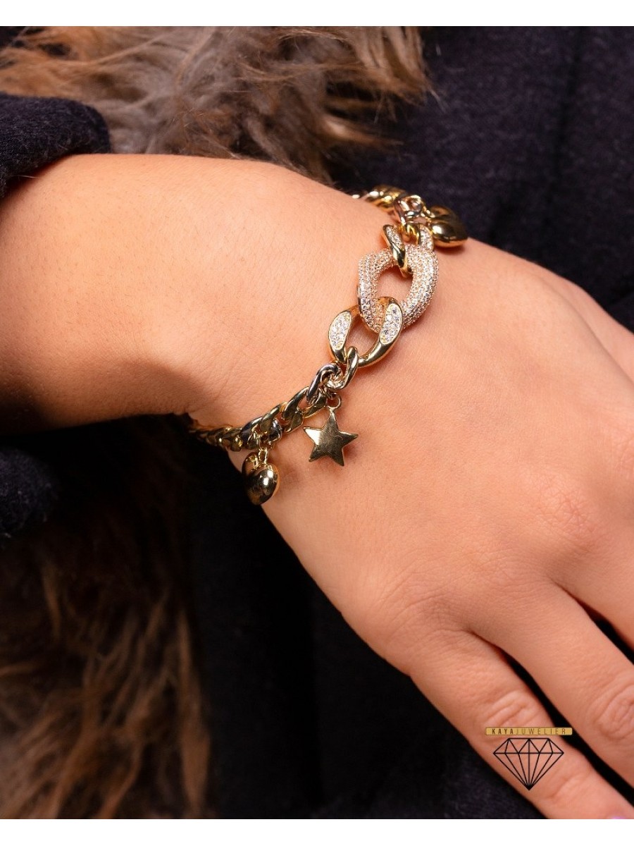 Yıldız Kalpli Hallow Bileklik - 15.53 Gr - BLK1481 - 14 Ayar Altın